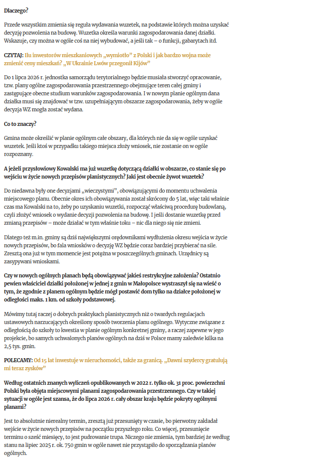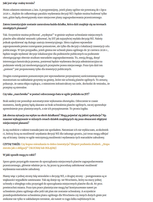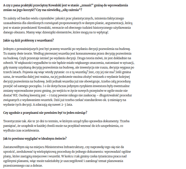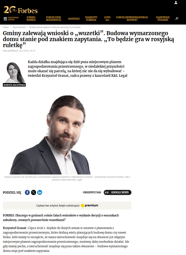 Mec. Krzysztof Granat udzielił obszernego wywiadu dla FORBES omawiając losy decyzji WZ w nadchodzącym 2026 roku. Czy bez planu miejscowego da się dalej budować? Na te pytania odpowiada poniższa publikacja